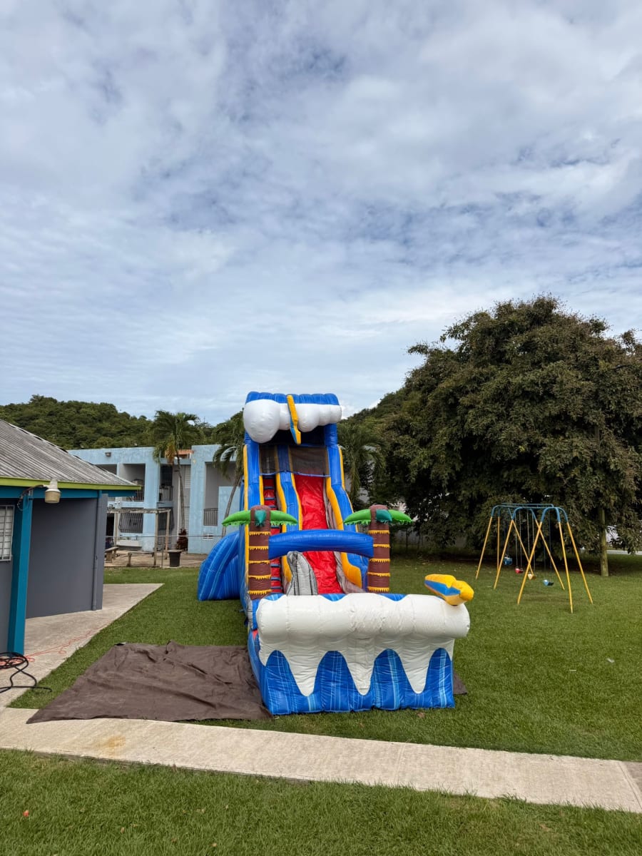 Con la resbaladera inflable “Ola Tropical” de 24 pies, la diversión no tiene límites. 🌴☀️