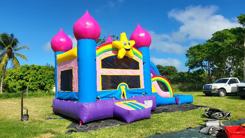 Prepárate para disfrutar de horas interminables de diversión con el combo 3 en 1 Estrellita! Este bello inflable con chorrera seca y de agua es la opción perfecta para alegrar cualquier fiesta o evento al aire libre.